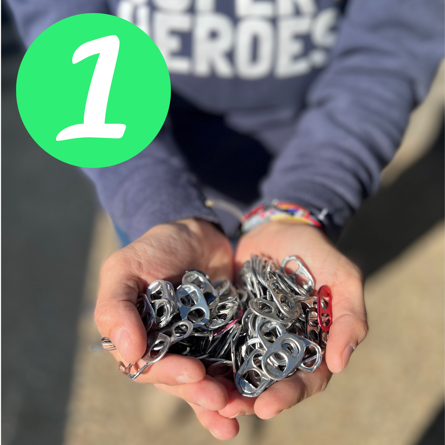 To practice our superpower of recycling, we are going to collect as many aluminum can tabs as we can! These can be found on soda cans, soup cans, cat food tins, etc. Get your family, class, friends, and community involved to help you!